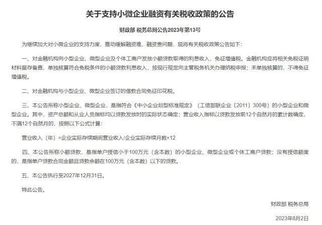 央視網(wǎng)消息:據(jù)財(cái)政部,為繼續(xù)加大對(duì)小微企業(yè)的支持力度,推動(dòng)緩解融資難、融資貴問題,現(xiàn)將有關(guān)稅收政策公告如下: