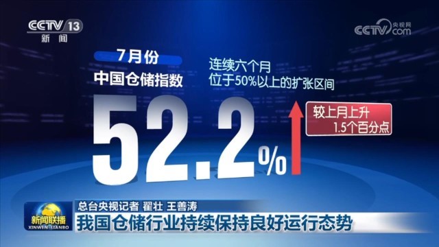 中國物流與采購聯(lián)合會(huì)2日公布,今年7月份,中國倉儲(chǔ)指數(shù)為52.2%,連續(xù)六個(gè)月位于50%以上的擴(kuò)張區(qū)間。數(shù)據(jù)顯示,倉儲(chǔ)企業(yè)生產(chǎn)經(jīng)營活動(dòng)活躍,業(yè)務(wù)量明顯增長,企業(yè)對(duì)市場(chǎng)前景保持樂觀。
