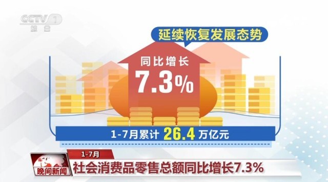 1—7月社會(huì)消費(fèi)品零售總額同比增長(zhǎng)7.3%
