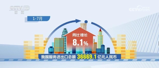 數(shù)據(jù)顯示,1月—7月,我國服務進出口總額36669.1億元人民幣,同比增長8.1%。