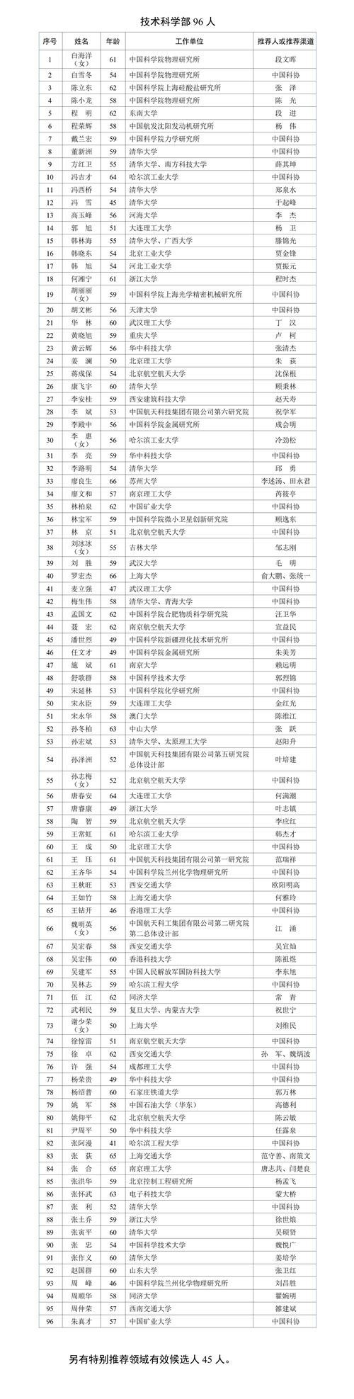 中國青年報(bào)客戶端北京8月31日電(中青報(bào)·中青網(wǎng)記者 張茜)記者從中國科學(xué)院官網(wǎng)獲悉,2023年中國科學(xué)院院士增選推薦工作已經(jīng)結(jié)束。經(jīng)第九屆中國科學(xué)院學(xué)部主席團(tuán)第十次會(huì)議審議,中國科學(xué)院黨組審定,確認(rèn)2023年中國科學(xué)院院士增選有效候選人583人。另有特別推薦領(lǐng)域有效候選人45人。