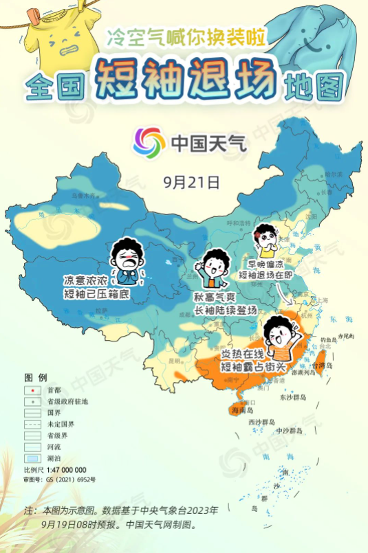 進(jìn)入9月中旬,冷空氣變“勞?!鳖l繁來(lái)襲,西北、東北大部都已邁入秋天門檻,但華北一帶今年秋天似乎來(lái)得有點(diǎn)兒晚,南方地區(qū)白天甚至熱到還要開(kāi)空調(diào),不少網(wǎng)友喊話:“秋高氣爽何時(shí)能來(lái)?”9月19日至21日,受冷空氣和降雨共同影響,長(zhǎng)江以北大部地區(qū)將陸續(xù)迎來(lái)降溫,開(kāi)啟秋日初體驗(yàn)。中國(guó)天氣網(wǎng)特別推出全國(guó)短袖退場(chǎng)地圖,看看哪里可以安排秋天的第一件長(zhǎng)袖。