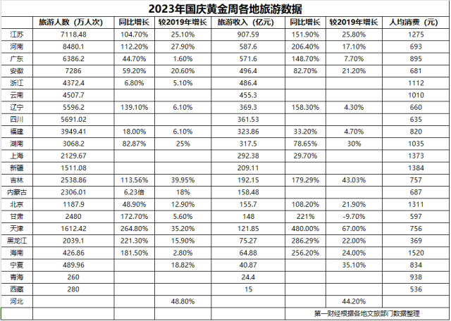 26省國慶黃金周旅游數(shù)據(jù)出爐,哪些省份賺得多?