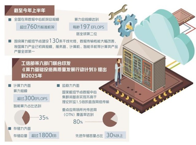 近日,工業(yè)和信息化部等六部門聯(lián)合印發(fā)《算力基礎設施高質(zhì)量發(fā)展行動計劃》,從計算力、運載力、存儲力以及應用賦能4個方面提出了到2025年的發(fā)展量化指標。隨著AI加速技術融合,算力需求持續(xù)爆發(fā),企業(yè)紛紛擴大算力供給。有報告預測,2020年至2030年,人工智能驅(qū)動的算力將增長500倍,通用算力將增長10倍。算力已經(jīng)成為智慧社會的重要基石。如何健全算力網(wǎng)、解決算力難、用好算力券、充分激活算力腦,成為當下數(shù)字時代產(chǎn)業(yè)經(jīng)濟發(fā)展的關鍵。