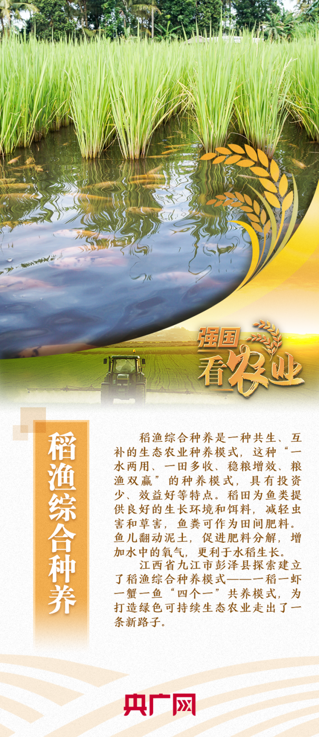 時下,正值稻香魚肥之季。在江西省九江市彭澤縣一片片綠油油的稻田里,村民們正忙著查看前段時間投放的魚苗長勢,生機盎然的水稻與環(huán)繞相間的水渠、交錯縱橫的田間道相映成趣,勾勒出一幅“稻在水中長、魚繞稻間游”的鄉(xiāng)村田園畫卷。