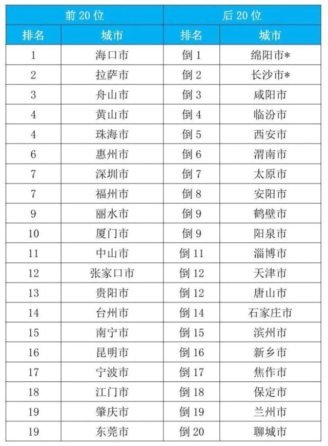 從重點城市排名看,1至9月,168個重點城市中,空氣質(zhì)量排名前20位城市依次是???、拉薩和舟山等城市(從第1名至并列第19名);空氣質(zhì)量排名后20位城市依次是綿陽、長沙和咸陽等城市(從倒數(shù)第1名至倒數(shù)第20名)。據(jù)了解,綿陽市的一個監(jiān)測站點4月和5月、長沙市的一個監(jiān)測站點6月受到嚴(yán)重人為干擾,生態(tài)環(huán)境部對所在城市當(dāng)月六項污染物濃度進(jìn)行了最大值替代處理。(記者高敬)
