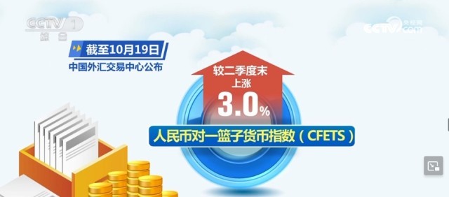 國家外匯管理局10月20日公布我國三季度外匯數(shù)據(jù),截至10月19日,中國外匯交易中心公布的人民幣對一籃子貨幣指數(shù)(CFETS)較二季度末上漲3.0%。我國穩(wěn)經(jīng)濟(jì)政策持續(xù)發(fā)力并逐步顯效,人民幣對美元匯率略有貶值,對歐元、英鎊、日元等主要貨幣有所升值。人民幣匯率在全球貨幣中表現(xiàn)穩(wěn)健。
