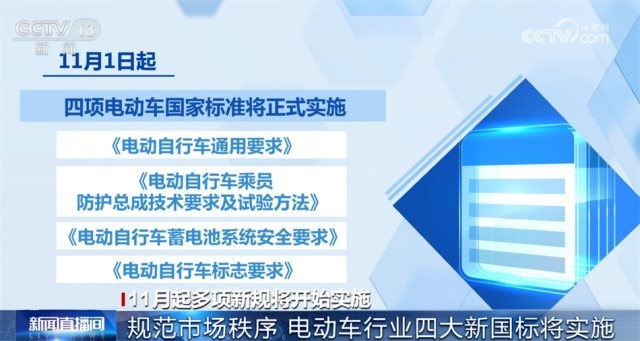 11月1日起,四項(xiàng)電動(dòng)車國家標(biāo)準(zhǔn)將正式實(shí)施,分別是《電動(dòng)自行車通用要求》《電動(dòng)自行車乘員防護(hù)總成技術(shù)要求及試驗(yàn)方法》《電動(dòng)自行車蓄電池系統(tǒng)安全要求》以及《電動(dòng)自行車標(biāo)志要求》。這些標(biāo)準(zhǔn)對(duì)電動(dòng)車的設(shè)計(jì)制造、安全性能、電池系統(tǒng)和標(biāo)識(shí)等方面都提出了明確規(guī)定,涉及電動(dòng)車的車把、鋰電池、總線設(shè)計(jì)、電子控制系統(tǒng)等。