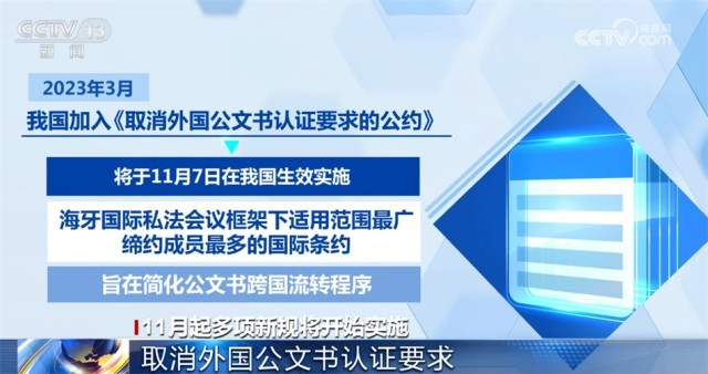 今年3月,我國加入《取消外國公文書認(rèn)證要求的公約》,《公約》將于11月7日在我國生效實(shí)施?!豆s》是海牙國際私法會(huì)議框架下適用范圍最廣、締約成員最多的國際條約,旨在簡(jiǎn)化公文書跨國流轉(zhuǎn)程序。11月7日起,中國送往其他締約國使用的公文書僅需辦理《公約》規(guī)定的附加證明書,即可送其他締約國使用,無需辦理中國和締約國駐華使領(lǐng)館的領(lǐng)事認(rèn)證。其他締約國公文書送中國內(nèi)地使用,只需辦理該國附加證明書,無需辦理該國和中國駐當(dāng)?shù)厥诡I(lǐng)館的領(lǐng)事認(rèn)證。