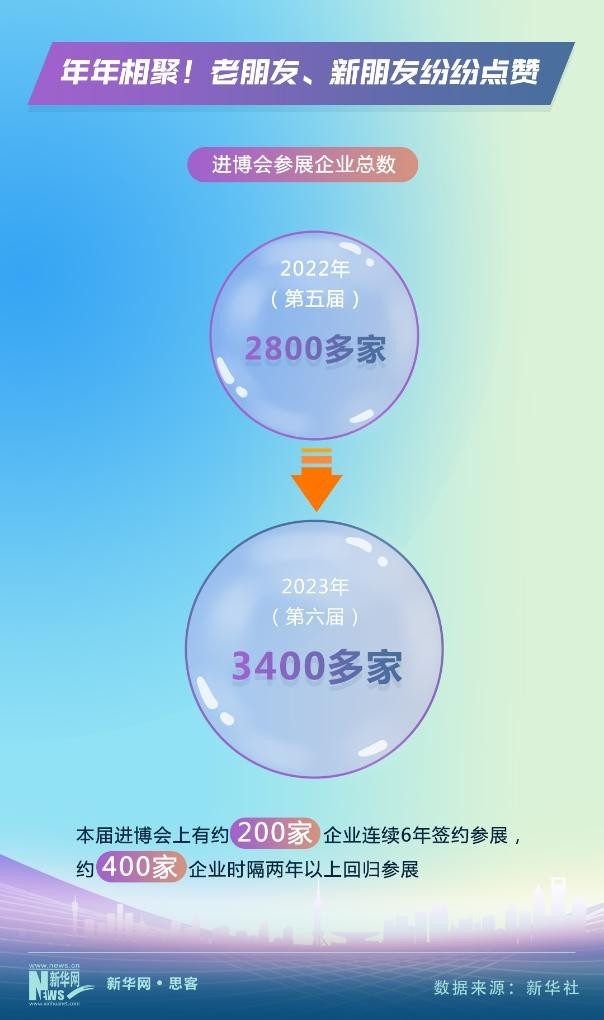 進(jìn)博會(huì)這個(gè)充滿機(jī)遇的舞臺(tái)迎接了一批又一批參展企業(yè)。據(jù)悉,本屆進(jìn)博會(huì)上,超過(guò)3400家參展企業(yè)在昵稱為“四葉草”的國(guó)家會(huì)展中心(上海)亮相,大大超過(guò)了上屆2800多家的規(guī)模?!芭笥讶Α辈粩鄶U(kuò)大的同時(shí),一些“老伙伴”對(duì)進(jìn)博會(huì)興趣不減。數(shù)據(jù)統(tǒng)計(jì)顯示,約200家企業(yè)連續(xù)6年簽約參展,約400家企業(yè)時(shí)隔兩年以上回歸參展,再次續(xù)寫(xiě)它們的“進(jìn)博緣分”。