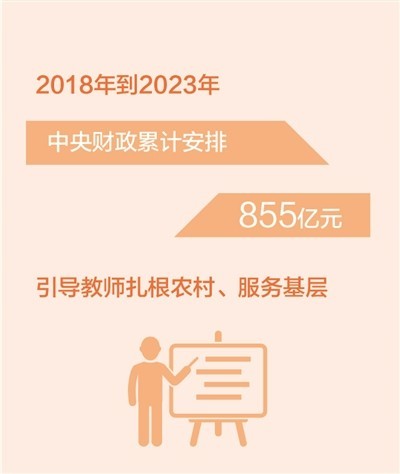 2018年到2023年中央財政累計安排855億元引導教師扎根農村、服務基層