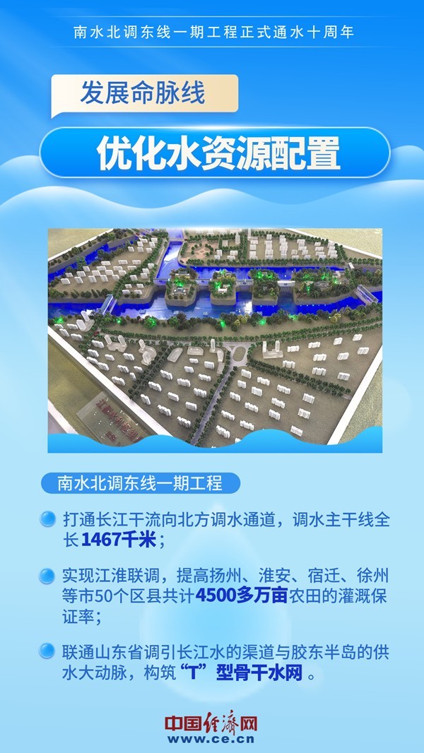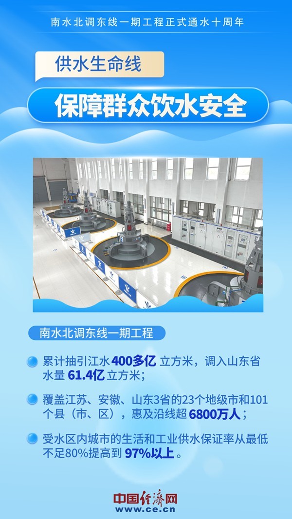 10年來,長(zhǎng)江水、淮河水、黃河水等水系構(gòu)筑起的縱橫水網(wǎng),由一渠清水串連,鋪陳在東方大地上,連接起江蘇、安徽、山東3省的23個(gè)地級(jí)市和其轄內(nèi)的101個(gè)縣(市、區(qū))用水需求,惠及沿線超6800萬人。