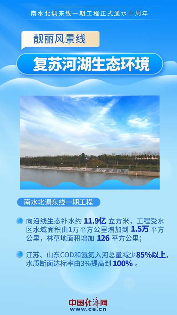 2013年11月15日,南水北調(diào)東線一期工程正式通水。通水10年來,東線一期工程累計(jì)抽引江水400多億立方米,調(diào)入山東省水量61.4億立方米,有效緩解了南水北調(diào)東線沿線受水區(qū)缺水問題,受益人口超6800萬人,成為優(yōu)化水資源配置、保障群眾飲水安全、復(fù)蘇河湖生態(tài)環(huán)境、暢通南北經(jīng)濟(jì)循環(huán)的生命線。