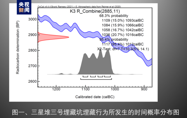 三號(hào)坑埋藏行為所發(fā)生的時(shí)間:落在公元前1117年—公元前1012年之間的概率是95.4%,落在公元前1109年到公元前1016年之間的概率是68.3%;