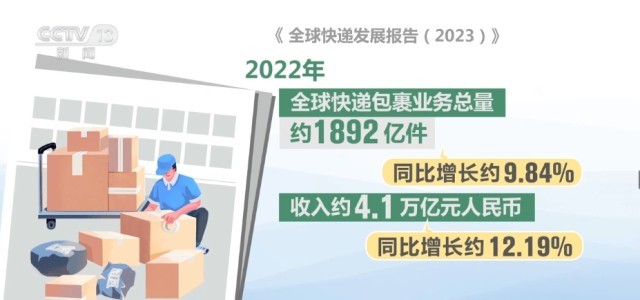 《全球快遞發(fā)展報(bào)告(2023)》指出,2022年,全球快遞包裹業(yè)務(wù)總量約1892億件,同比增長約9.84%;收入約4.1萬億元人民幣,同比增長約12.19%。人均包裹量約24件,地區(qū)發(fā)展不平衡的情況突出。