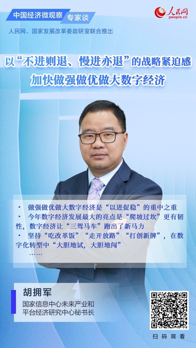 近日,國家信息中心未來產(chǎn)業(yè)和平臺(tái)經(jīng)濟(jì)研究中心秘書長胡擁軍做客《中國經(jīng)濟(jì)微觀察·專家談》欄目時(shí)表示,“以進(jìn)促穩(wěn)”是中央經(jīng)濟(jì)工作會(huì)議釋放的最鮮明的積極信號之一,從經(jīng)濟(jì)回升向好的趨勢、潛力、基礎(chǔ)來看,做強(qiáng)做優(yōu)做大數(shù)字經(jīng)濟(jì)是“以進(jìn)促穩(wěn)”的重中之重。