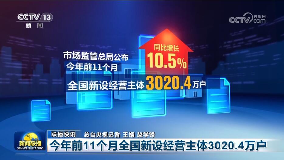今年前11個月全國新設(shè)經(jīng)營主體3020.4萬戶