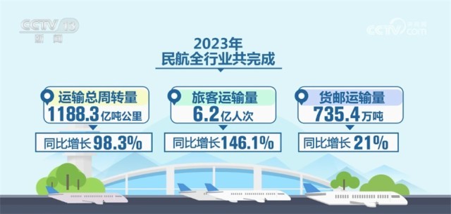 記者今天從中國民航局了解到,2023年民航全行業(yè)共完成運輸總周轉(zhuǎn)量1188.3億噸公里、旅客運輸量6.2億人次,全行業(yè)大幅減虧1872億元。