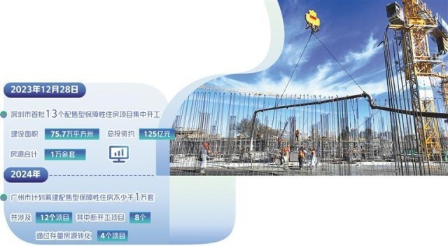 1月13日,廣州市在黃埔區(qū)知識城何棠下舉行首批配售型保障性住房開工儀式。據(jù)了解,2024年廣州市計劃籌建配售型保障性住房不少于1萬套,共涉及12個項目,其中新開工項目8個,通過存量房源轉(zhuǎn)化4個項目。2023年12月28日,深圳市首批配售型保障性住房建設(shè)集中開工,本次集中開工共有13個配售型保障性住房項目,建設(shè)面積75.7萬平方米,總投資約125億元,房源合計1萬余套,項目周邊交通、教育、商業(yè)等配套較為完善。