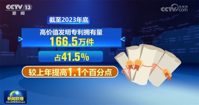 國務(wù)院新聞辦公室1月16日舉行新聞發(fā)布會,國家知識產(chǎn)權(quán)局相關(guān)負(fù)責(zé)人介紹,截至2023年底,我國國內(nèi)(不含港澳臺)發(fā)明專利有效量為401.5萬件,同比增長22.4%,首次超過400萬件。其中,高價(jià)值發(fā)明專利擁有量166.5萬件,占41.5%,較上年提高1.1個百分點(diǎn)。國內(nèi)企業(yè)擁有有效發(fā)明專利290.9萬件,占比增至71.2%,首次超過七成,創(chuàng)新主體地位進(jìn)一步凸顯。