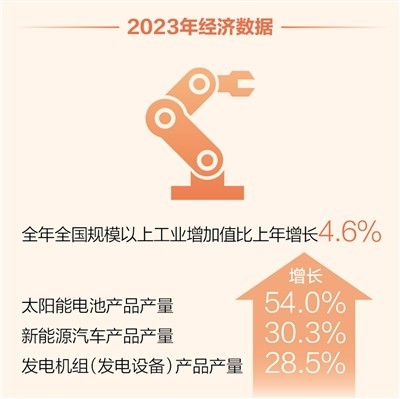 發(fā)展方式進(jìn)一步轉(zhuǎn)變。截至2023年底,我國(guó)可再生能源發(fā)電裝機(jī)容量占比超過總裝機(jī)的一半,歷史性地超過火電。2023年我國(guó)新能源汽車產(chǎn)銷量居世界第一,電動(dòng)載人汽車出口量同比增長(zhǎng)67.1%,綠色低碳產(chǎn)品產(chǎn)量快速增長(zhǎng)。