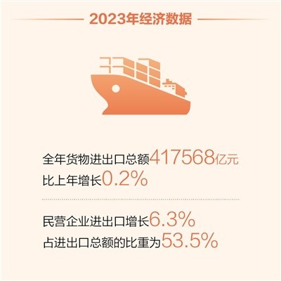 國(guó)際循環(huán)質(zhì)量和水平進(jìn)一步提升。面對(duì)外需收縮等不利影響,我國(guó)加力推動(dòng)外貿(mào)穩(wěn)規(guī)模、優(yōu)結(jié)構(gòu),出口實(shí)現(xiàn)正增長(zhǎng),國(guó)際市場(chǎng)份額保持總體穩(wěn)定。同時(shí),積極拓展國(guó)際經(jīng)貿(mào)合作,2023年我國(guó)對(duì)共建“一帶一路”國(guó)家進(jìn)出口總額比上年增長(zhǎng)2.8%。