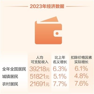 人民生活進(jìn)一步改善。2023年,居民人均可支配收入同比實(shí)際增長(zhǎng)6.1%,城鄉(xiāng)居民收入穩(wěn)定增長(zhǎng)。電力、熱力、燃?xì)饧八纳a(chǎn)和供應(yīng)業(yè)投資增長(zhǎng)23%,農(nóng)業(yè)投資增長(zhǎng)9.3%,快于全部投資,民生投入力度不斷加大。