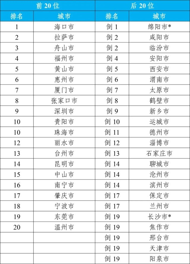 1—12月,168個重點城市中:空氣質量排名前20位城市依次是???、拉薩和舟山等城市(從第1名至第20名);空氣質量排名后20位城市依次是綿陽、咸陽和臨汾等城市(從倒數(shù)第1名至并列倒數(shù)第19名)。空氣質量變化排名前20位城市依次是漯河、駐馬店和鶴壁等城市(從第1名至并列第20名);空氣質量變化排名后20位城市依次是綿陽、長沙和南充等城市(從倒數(shù)第1名至倒數(shù)第20名)。其中,綿陽市科技城新區(qū)的高新區(qū)自來水公司站點4月和5月、長沙市開福區(qū)的伍家?guī)X站點6月受到嚴重人為干擾,對所在城市當月六項污染物濃度進行了最大值替代處理。見附表2、3。