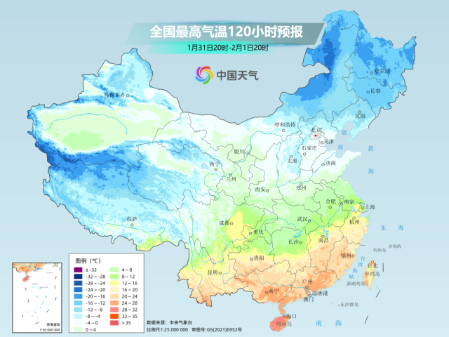 1月31日至2月1日,南方暖熱將達(dá)到階段性高點(diǎn),屆時最高氣溫20℃線將北抬至江南中部,華南不少地方最高氣溫將超過25℃。