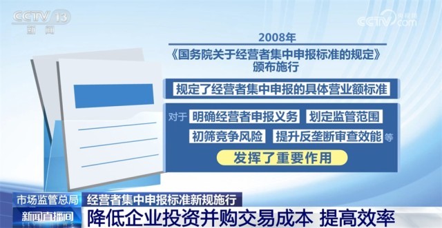 市場監(jiān)管總局介紹,經(jīng)營者集中申報標準是經(jīng)營者集中反壟斷審查制度的重要內(nèi)容。2008年《國務(wù)院關(guān)于經(jīng)營者集中申報標準的規(guī)定》頒布施行,規(guī)定了經(jīng)營者集中申報的具體營業(yè)額標準,對于明確經(jīng)營者申報義務(wù)、劃定監(jiān)管范圍、初篩競爭風險、提升反壟斷審查效能等發(fā)揮了重要作用。