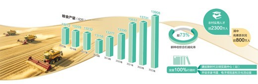 2023年,克服黃淮罕見(jiàn)“爛場(chǎng)雨”、華北東北局地嚴(yán)重洪澇、西北局部干旱等災(zāi)害影響,全年糧食產(chǎn)量13908.2億斤,高基數(shù)上增產(chǎn)177.6億斤,再創(chuàng)歷史新高;大豆播種面積穩(wěn)中有增,連續(xù)兩年穩(wěn)定在1.5億畝以上。今年中央一號(hào)文件明確提出確保糧食產(chǎn)量保持在1.3萬(wàn)億斤以上的目標(biāo),重點(diǎn)是穩(wěn)面積、增單產(chǎn)兩手發(fā)力。