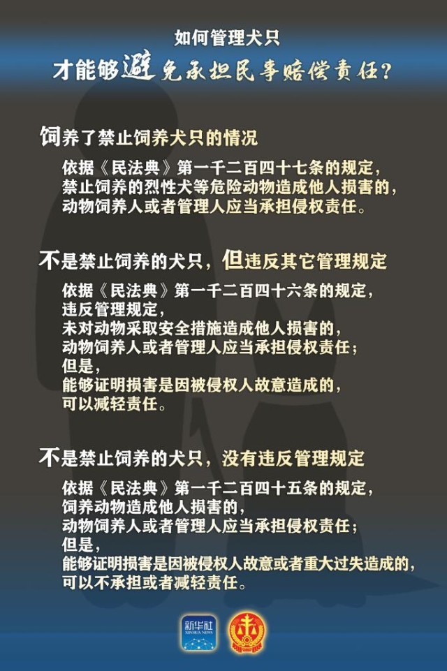 “據(jù)統(tǒng)計,僅就養(yǎng)犬看,2022年中國城鎮(zhèn)犬只數(shù)量為5119萬只。實踐中,致人嚴(yán)重損害的主要是烈性犬等危險犬種?!弊罡呷嗣穹ㄔ好褚煌ネラL陳宜芳介紹,《民法典》《中華人民共和國治安管理處罰法》《中華人民共和國動物防疫法》以及相關(guān)地方法規(guī)規(guī)章等都對犬只飼養(yǎng)人、管理人應(yīng)當(dāng)履行的義務(wù)作出了規(guī)定。