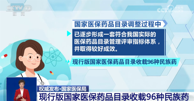 國(guó)家醫(yī)保局表示,少數(shù)民族醫(yī)藥是中醫(yī)藥的重要組成部分,國(guó)家高度重視少數(shù)民族醫(yī)藥發(fā)展,重視民族醫(yī)藥的科學(xué)研究和開(kāi)發(fā)利用。現(xiàn)行版國(guó)家醫(yī)保藥品目錄收載96種民族藥。