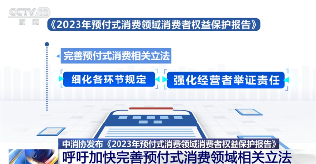 央視網(wǎng)消息:中國(guó)消費(fèi)者協(xié)會(huì)3月12日發(fā)布《2023年預(yù)付式消費(fèi)領(lǐng)域消費(fèi)者權(quán)益保護(hù)報(bào)告》,呼吁加快完善預(yù)付式消費(fèi)領(lǐng)域相關(guān)立法,強(qiáng)化經(jīng)營(yíng)者的舉證責(zé)任,落實(shí)對(duì)違法經(jīng)營(yíng)者的信用約束和懲戒措施。