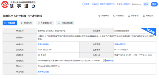 皖事通辦——通用航空飛行空域及飛行計劃轉(zhuǎn)報