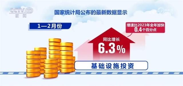 隨著增發(fā)國債項目的落地實施和支撐災后應急恢復重建資金的陸續(xù)下達,基礎設施投資增速小幅回升。國家統(tǒng)計局公布的最新數(shù)據(jù)顯示,1—2月份,基礎設施投資同比增長6.3%,增速比2023年全年加快0.4個百分點。其中,水利管理業(yè)投資增長13.7%、教育行業(yè)投資增長12.1%、基礎設施等民生補短板投資保持良好增長態(tài)勢。