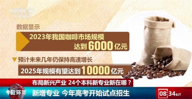 那么,這些新專業(yè)到底會講授什么內容呢?總臺記者在云南農業(yè)大學采訪時發(fā)現(xiàn),新增設的咖啡科學與工程專業(yè)今年計劃招收60名學生。2023年,我國咖啡市場規(guī)模達到6000億元,預計到2025年,規(guī)模有望達到10000億元。而與此同時,在幾大招聘網站上,咖啡培訓師、咖啡師主管等崗位仍有大量空缺。