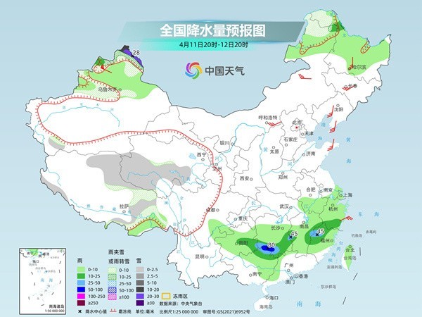 昨天夜間至明天,江南中南部、西南地區(qū)東南部、廣西東北部等地部分地區(qū)有中到大雨,其中,湖南南部、廣西東北部等地部分地區(qū)有暴雨。