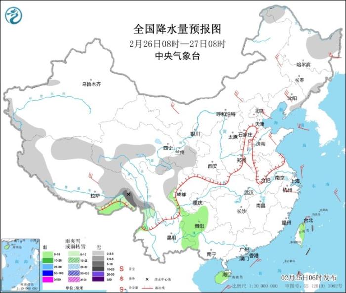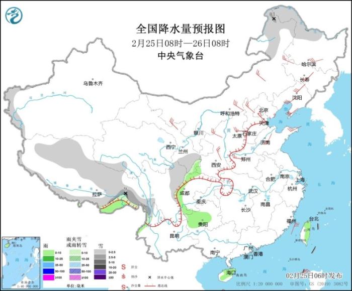 具體來看,中央氣象臺預計,今天,內(nèi)蒙古東北部、黑龍江西北部、新疆南疆西部山區(qū)、西藏大部、甘肅南部、川西高原東部、云南西北部等地部分地區(qū)有小到中雪或雨夾雪,其中,西藏東南部局地有大雪(5~9毫米)。西藏東南部、甘肅南部、陜西西南部、四川盆地西部、貴州中西部、云南西北部、海南島大部、臺灣島東部等地部分地區(qū)有小雨。