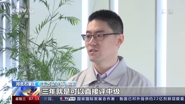 工藝設(shè)計(jì)師 郭策:現(xiàn)在碩士研究生畢業(yè)之后,三年就可以直接評中級,也就是說應(yīng)該是省了兩年時(shí)間。