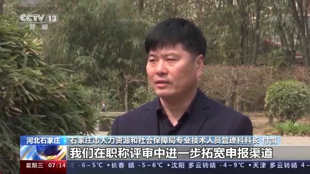 石家莊市人力資源和社會保障局專業(yè)技術(shù)人員管理科科長 付凱:我們在職稱評審中,進(jìn)一步拓寬申報(bào)渠道。對高校畢業(yè)生職稱認(rèn)定從原來一年一次的集中初聘認(rèn)定,改為現(xiàn)在一月一次的考核認(rèn)定,實(shí)現(xiàn)人才職稱的即報(bào)即審,對穩(wěn)定高校畢業(yè)生就業(yè)起到了保障作用,使得人才引得來,留得住。