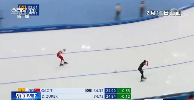 2月12日下午,在國家速滑館“冰絲帶”,速度滑冰男子500米的比賽正在進(jìn)行中。