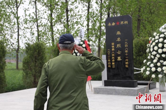 中新網(wǎng)合肥4月27日電 (劉浩 陶安杰 陳春怡 和鵬飛 王問(wèn))在安徽省蚌埠市固鎮(zhèn)縣湖溝鎮(zhèn)王洲村,淮海戰(zhàn)役30余名無(wú)名烈士合葬墓立碑儀式近日舉行,當(dāng)?shù)叵嚓P(guān)部門(mén)及普通百姓自發(fā)前往現(xiàn)場(chǎng),憑吊烈士忠魂,緬懷烈士功績(jī),傳承紅色基因,告慰先烈英靈。