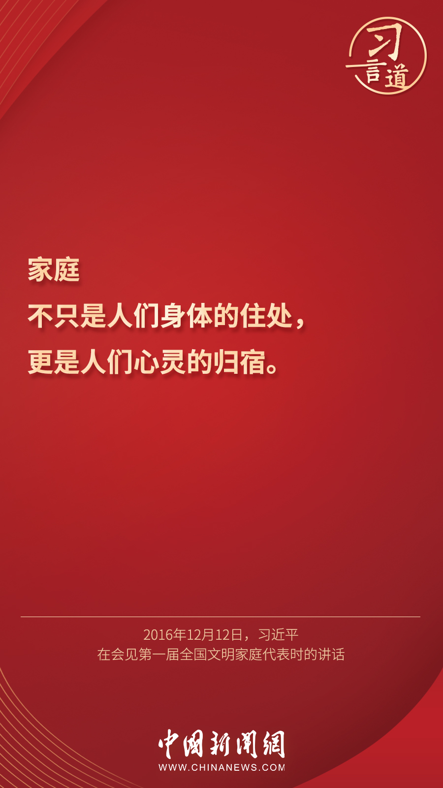 “家庭不只是人們身體的住處,更是人們心靈的歸宿?!苯陙恚?xí)近平總書記發(fā)表過諸多關(guān)于重視親情、營(yíng)造良好家風(fēng)的重要論述,他指出——