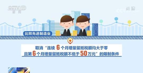 在擴(kuò)大范圍、提高比例以及加快頻次上,與前期政策相比,實施力度均有所加大。對小微企業(yè)和制造業(yè)等六個行業(yè),不僅允許其退還增量留抵稅額,而且允許其退還存量留抵稅額。將小微企業(yè)和制造業(yè)等六個行業(yè)增量留抵稅額退還比例由60%提高到100%,和先進(jìn)制造業(yè)保持一致。另外,對所有小微企業(yè)和制造業(yè)等六個行業(yè)納稅人均按月退還增量留抵稅額,比照先進(jìn)制造業(yè),取消“連續(xù)6個月增量留抵稅額均大于零,且第6個月增量留抵稅額不低于50萬元”的限制條件。
