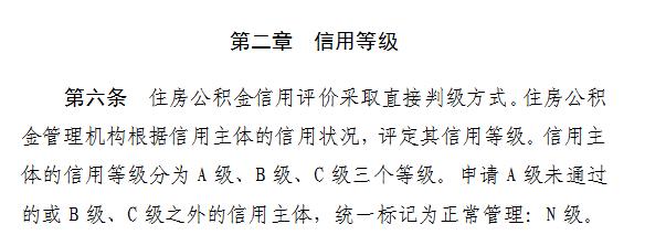 征求意見稿提出,住房公積金管理機構(gòu)根據(jù)信用主體的信用狀況,評定其信用等級。信用主體的信用等級分為A級、B級、C級三個等級。申請A級未通過的或B級、C級之外的信用主體,統(tǒng)一標(biāo)記為正常管理:N級。住房公積金管理機構(gòu)對信用等級實施動態(tài)管理,有效期為5年。(完)