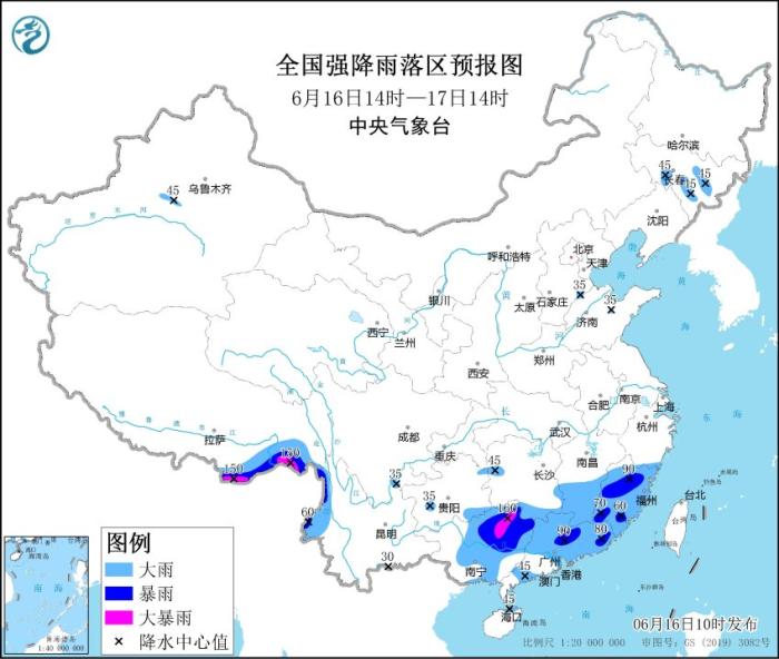 中新網(wǎng)6月16日電 據(jù)中央氣象臺網(wǎng)站消息,中央氣象臺6月16日10時繼續(xù)發(fā)布暴雨藍色預(yù)警:預(yù)計,6月16日14時至17日14時,福建、江西南部、湖南南部、廣東大部、廣西中東部以及云南西北部、西藏東南部等地的部分地區(qū)有大到暴雨,局地大暴雨(100~160毫米)。上述部分地區(qū)伴有短時強降水(最大小時降雨量20~50毫米,局地可超過60毫米),局地有雷暴大風(fēng)等強對流天氣。