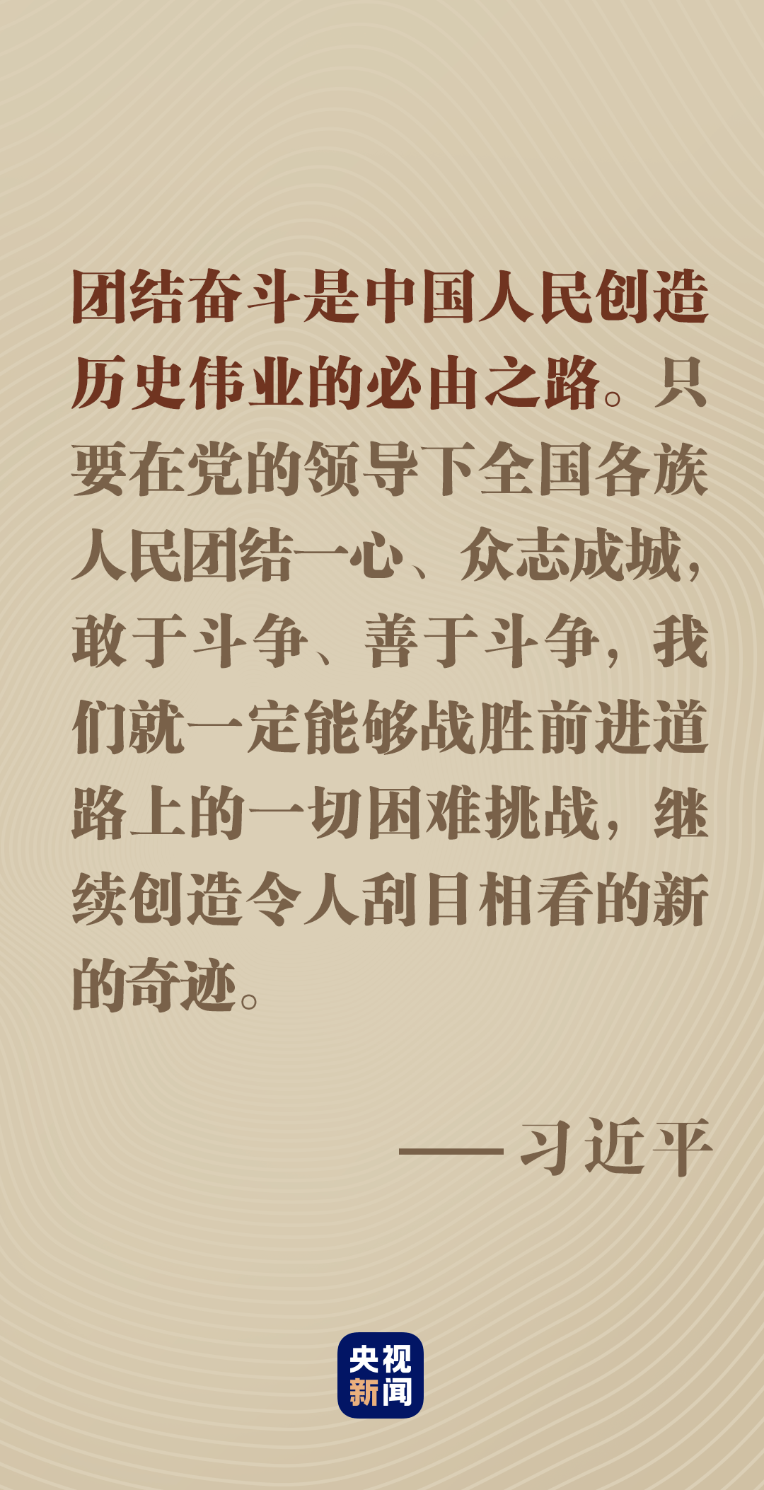 無論風(fēng)云如何變幻,無論挑戰(zhàn)如何嚴峻,只要我們精誠團結(jié)、共同奮斗,就沒有任何力量能夠阻擋中國人民前進的步伐。