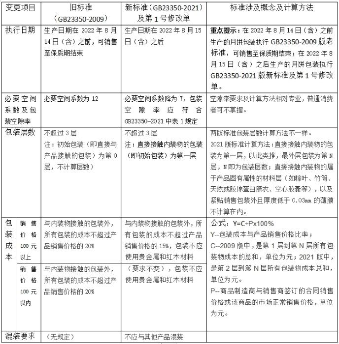 中消協(xié)也呼吁社會各界對照下表中包裝層數(shù)、包裝成本、混裝要求等三項內容,對市場上銷售的月餅產品進行監(jiān)督。同時監(jiān)督要依法客觀公正,不得損害經(jīng)營者的商業(yè)信譽等合法權益。