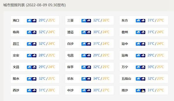 海南各城市預(yù)報(bào)。(來源:中國(guó)天氣網(wǎng))